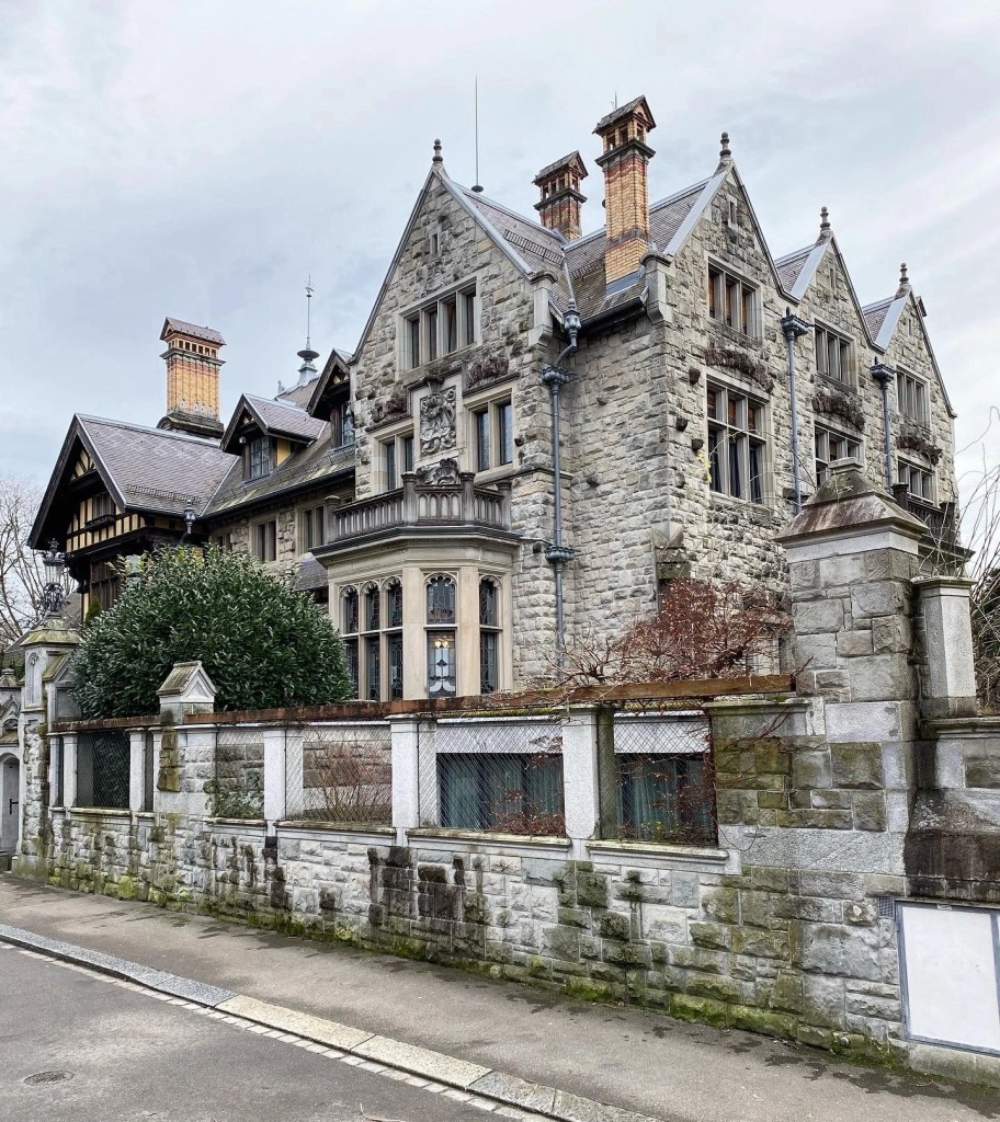 Архитектор сей уникальной постройки — рождённый в 1848 году в Цюрихе Александр Кох. Покорённый неоготикой, Кох в 1885 году переезжает жить в Англию. Одна из его знаменитых неоготических построек в Цюрихе — школьное здание Schulhaus Hirschengraben (об этом позже), а вот Villa Egli, построенная 1897-1902 для семьи Johann Heinrich Egli-Gerstner, — единственный ещё существующий загородный домик Коха.
