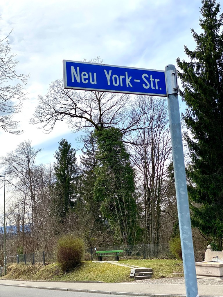 И вот на восточной стороне Цюрихского озера, неподалёку от городка Rüti жил фермер, который очень не хотел, чтобы и его сын, который тоже мечтал уехать, последовал примеру эмигрантов. И тогда он решил сделать сыну предложение: я построю тебе гигантский хутор, если ты останешься в родных краях. В ответ на это сын сказал, останусь, если хутор будет носить название города моей мечты – Нью-Йорк.