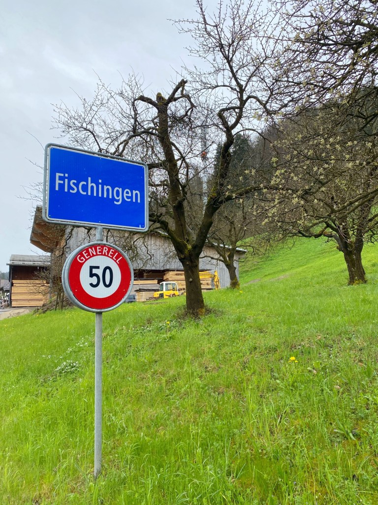 Фишинген насчитывает примерно 3’000 жителей. Своё название деревня получила благодаря прудику, в котором водилось несметное количество рыбы. К сожалению, тот пруд не сохранился, зато на гербе Фишинген изображены две рыбы: одна профилем налево, другая — направо.