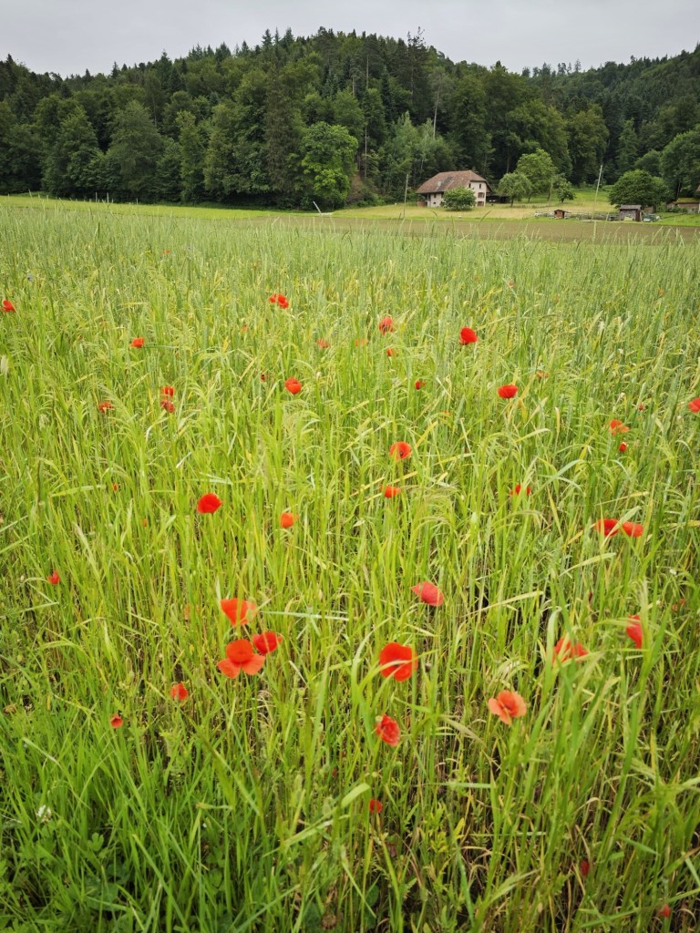Кстати, в Муэне я стала свидетелем забавной бытовой сценки: иду себе по тропинке, слева колосится пшеница, справа лесок и жилые домики. Вдруг выскакивает передо мной из избы бабуся, ныряет в кусты и что-то бормочет. Тут я замечаю, что перед ней в кустах тоже что-то шевелится. Подхожу ближе, спрашиваю, «там зверёк? Что-то случилось?» Бабуся выныривает из кустов и жалобно так, «мой котик птичку поймал!» Я, вся из себя кошатница, только собралась сказать что-то утешительное, как слышу сочное, жирное чавканье и хруст костей. Перевожу взгляд, в котором нагой ужас, на бабусю, а она, почти всхлипывая, «Das isch doch nöd schön!» После этого сказать было особо нечего. Я пожелала бабусе хорошего дня и пошла дальше.