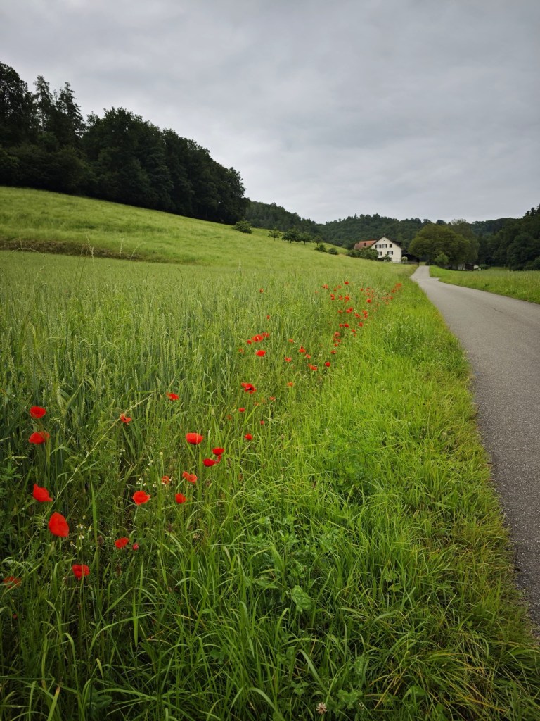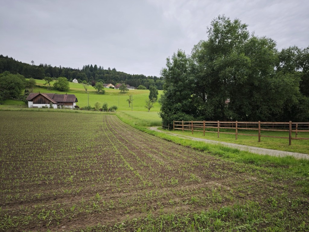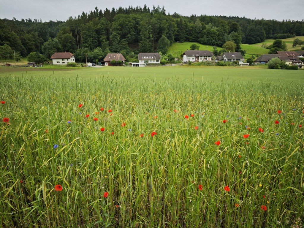 Итак, Хиршталь – деревушка в кантоне Aargau, в которой пытаются ужиться современная & традиционная архитектура. Фотографировать стеклобетонщину мне было совершенно неинтересно – не для того я из Цюриха приехала, — а вот прогуляться по полям, пофотографировать всякие домики, деревья и цветочки и ни души при этом не встретить – это пожалуйста. Но так как в желаниях своих я уже давно не соблюдаю никакой диеты, то нагулялась до такой степени, что унесло меня аж в соседнюю деревню Muhen, что по-немецки означает «мычать». Потерялася я, короче. Потерялась, но не растерялась и нафоткала кучу классных Муэновских пейзажей.