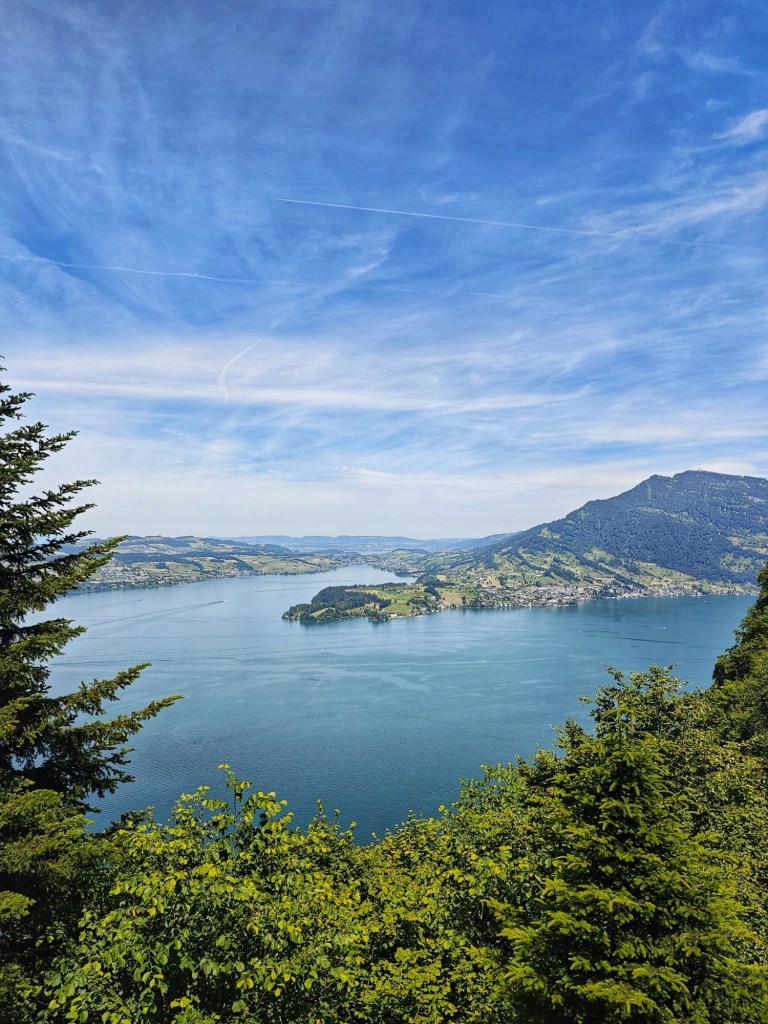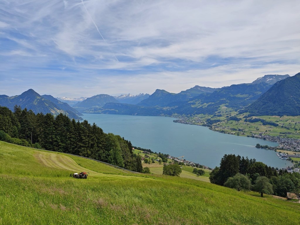 Эннетбюрген находится под южным склоном Бюргенштока, где я была месяц назад. Тогда Бюргеншток запомнился мне уродливыми мавзолейными постройками посреди горных пейзажей. В прошлый раз въехала я сюда через Люцерн, а в этот – через Эннетбюрген. Проезжая Эннетбюрген, Буохс, карабкаясь по горному серпантину, было невозможно отвести взор от открывающихся ландшафтов вокруг Люцернского озера (его ещё называют Фирвальдштетским или в оригинале Vierwaldstättersee).