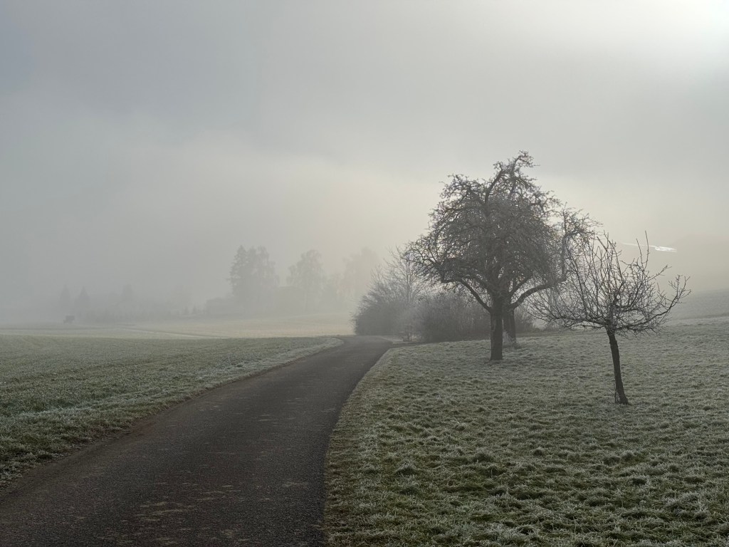 Первая прогулка в 2025 — по туманному Бассерсдорфу.
