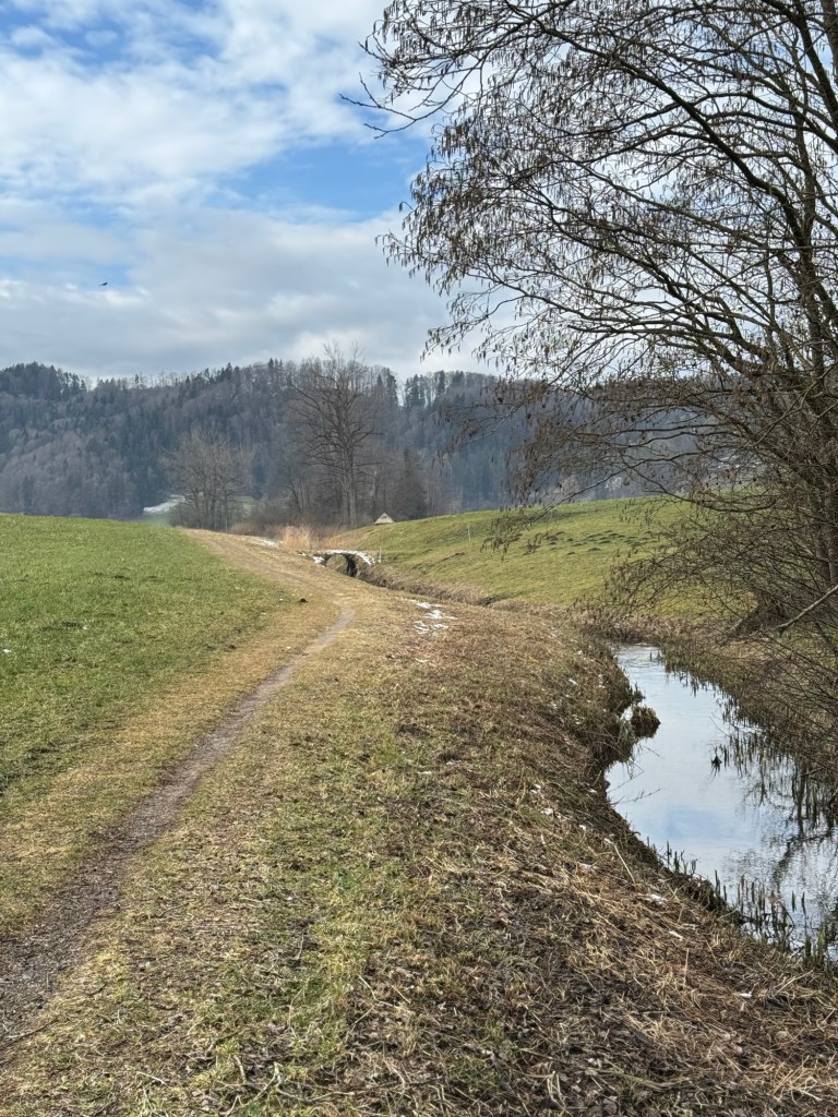 Бихельзее — няшное озеро в кантоне Тургау, вокруг которого стоят покрытые мхом «зубы дракона» (на немецком их также называют «Hitlerzähne» — зубы Гитлера. Обозначение пришло из норвежского языка — «Hitlertennene») и восточная часть которого лежит в кантоне Цюрих. Часть прогулки вокруг озера пришлась на проезжую часть, так что удалось попрыгать не только из кантона в кантон, но и от длиннющих грузовиков & истерично пибикающих легковушек. А ещё с телёнком подружилась.